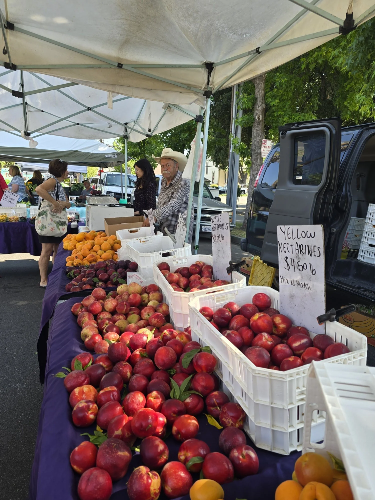 Ahmad Farms provides some of the most interesting fruit that you will find at our market! They have a wide array of pluot varieties from sweet and juicy to tart and tangy meatier fruits, more varieties than our other fruit vendors. They also have fresh nectarines, peaches, and apricots your kids will go crazy for! Sample any of their produce from the Ahmad Farms.